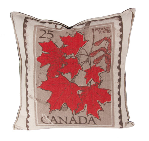 L643-LEAF 20"x20" Canada Leaf Image printed on this Pillow reverse to solid Coordinate with Feather Insert and Flanged edge part of The Vintage Canadiana Collection