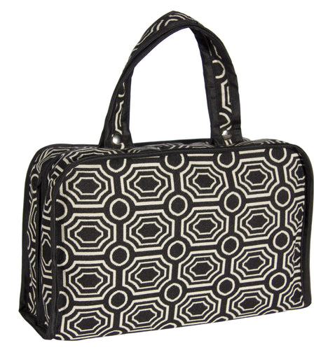 L167-1423 Pull Apart Large Cosmetic Bag 12"x8x4" This Bradstreet Ebony Double Handles with Snaps pulls apart to give you lots of Compartments inside for large Bottles of shampoo, toiletries and more is part of Cosmetic and Travel Accessories Collection