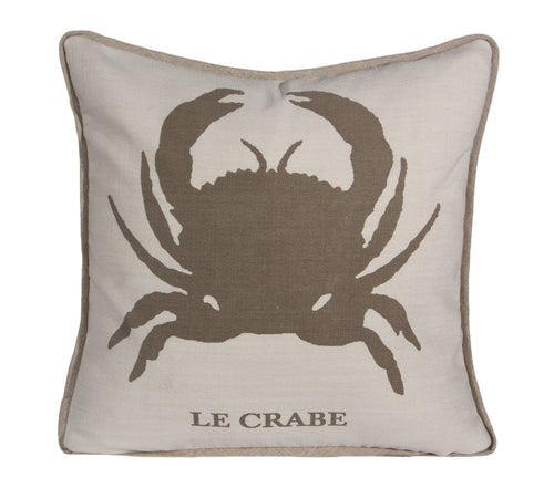 L642-CRAB 18"x18"Crab Pillow Eco Printed Flat Piped with a Linen Trim, Feather Insert part of the Lake House Collection, Zipper Closure for easy removal of Insert for Laundering