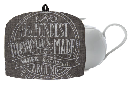 L724-FOND 10"x13" Fondest Memories Chalkboard Tea Cozy Eco Printed and designed in Canada, Chalk Style with on trend part of The Chalkboard Collection comes with a removable Lining