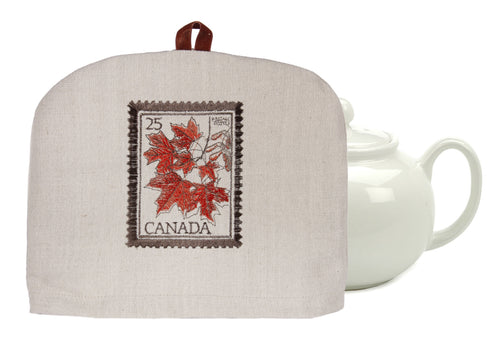 L724-LEAF 10"x13" Vintage Leaf Post embroidered on this Tea Cozy with Removable Liner, part of The Vintage Canadiana Collection
