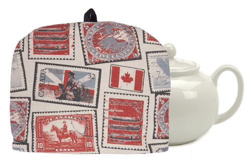 L724-STMP 10"x13" Vintage Stamp Images printed on this Tea Cozy with Removable Liner, part of The Vintage Canadiana Collection