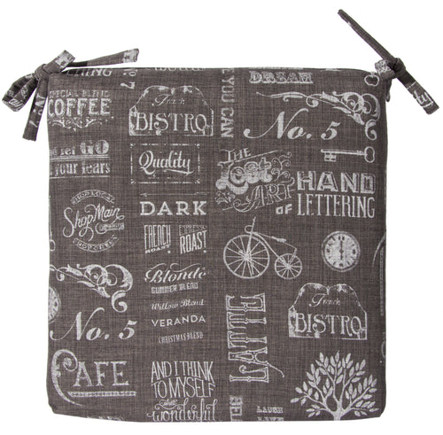 L744-CHALK 18"x18" Chalkboard Seat Cushion Rigid Foam and Fibre Eco Printed and designed in Canada, Chalk Style with on trend Images and Fonts printed on Grey Fabric part of The Chalkboard Collection