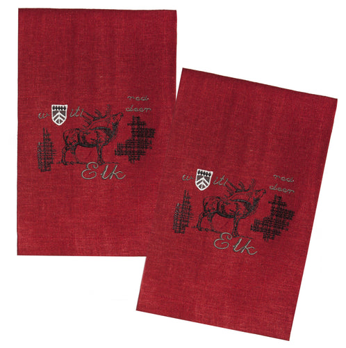 L771-ELK Country Style City Chic Guest Towels with Elk Motif 16"x24" Set of 2 on Linen Fabric