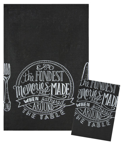 L771-FOND 16"x24" Fondest Memories Chalkboard Set of 2 Linen Guest Towels Eco Printed and designed in Canada, Chalk Style with on trend part of The Chalkboard Collection