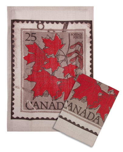 L771-LEAF 16"x24" Vintage Leaf Stamp Guest towels Set of 2 designed by Elizabeth Law with Eco Friendly Printing, part of The Vintage Canadiana Collection