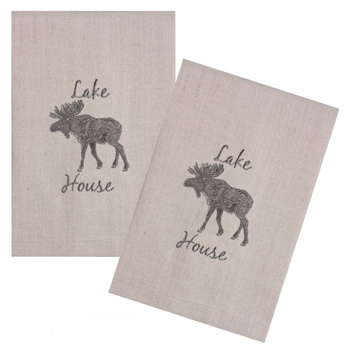 L771-LHSE 16x24" each Set of 2 Guest Towels with Moose and Lake House embroidered on Linen Blend Fabric for The Lake House Collection