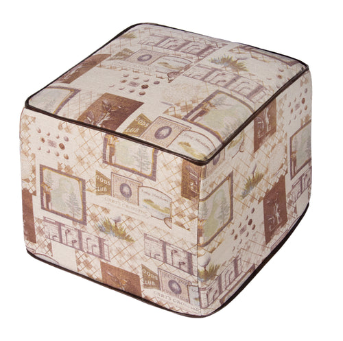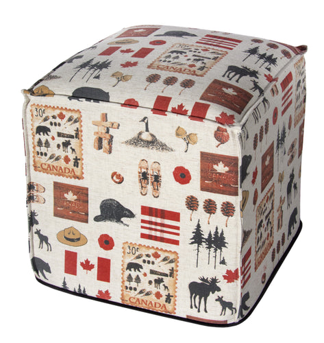L900N-NRTH Square Ottoman 18"x18"x16" Firm Foam and Poly Insert the Original Printed Design By Elizabeth at Lady Rosedale zips off for laundering and the base is a waterproof scratch resistant Denier Material part of The Vintage Canadiana Collection