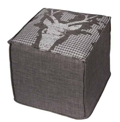 L900N-BUCK 18"x16"x16" Buck Chalkboard Ottoman Rigid Foam and Fibre Eco Printed and designed in Canada, Chalk Style with on trend Buck Image with Houndstooth printed on Grey Fabric part of The Chalkboard Collection