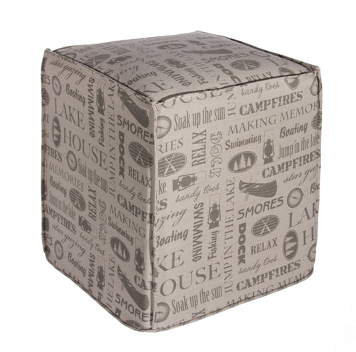 L900S-MEM 16x16x19" Printed Lake House Memories Tall Square Ottoman on Linen Blend