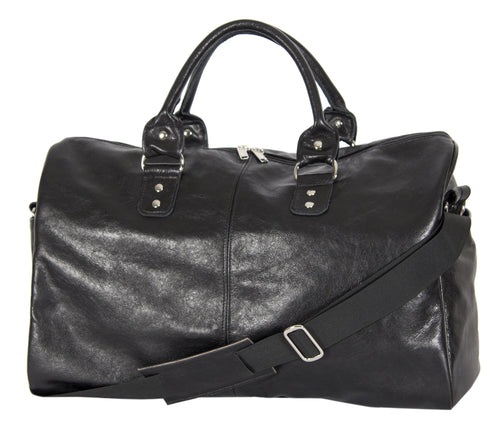 L1038-13 Borough Bag in an Authentic Old World Black Leather. Part of The On the Tee Vintage Golf Collection and Cosmetic and Travel, Vintage Canadiana, and Totes Collections 18"x12"x8"