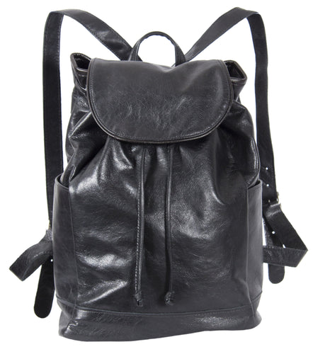 L1039-13 Backpack in an Authentic Old World Black Leather. Part of The On the Tee Vintage Golf Collection and Cosmetic and Travel, Vintage Canadiana, and Totes Collections 10"x15"x5.5"
